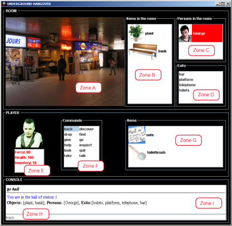 Zone A: Image de la salle dans laquelle le joueur se trouve.